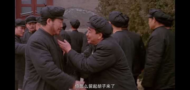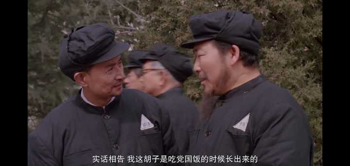 《决战之后》名场面颇多 开头众战犯刚进功德林没多久,有颇多旧相识重逢的场景,有一幕庞境塘遇到老朋友,聊起他留的胡子 |