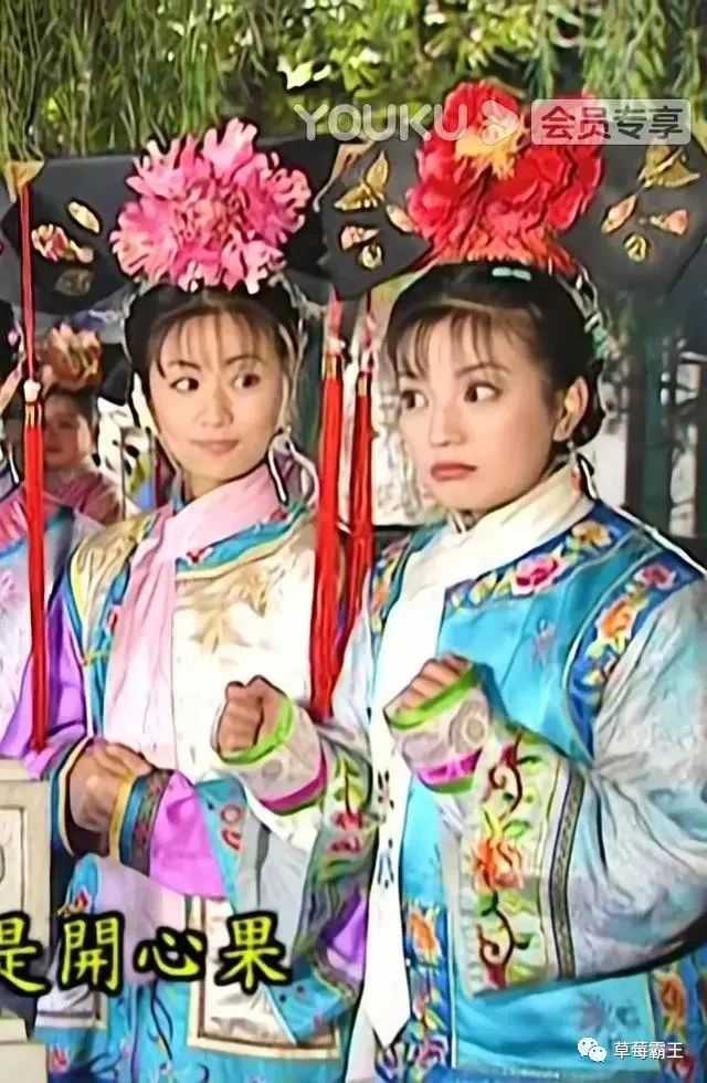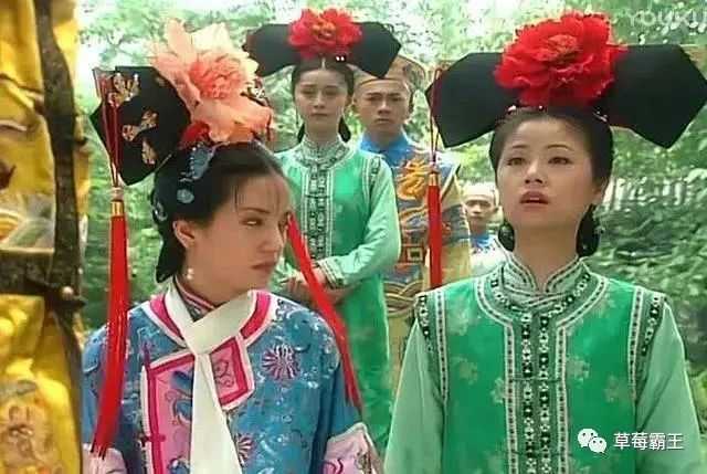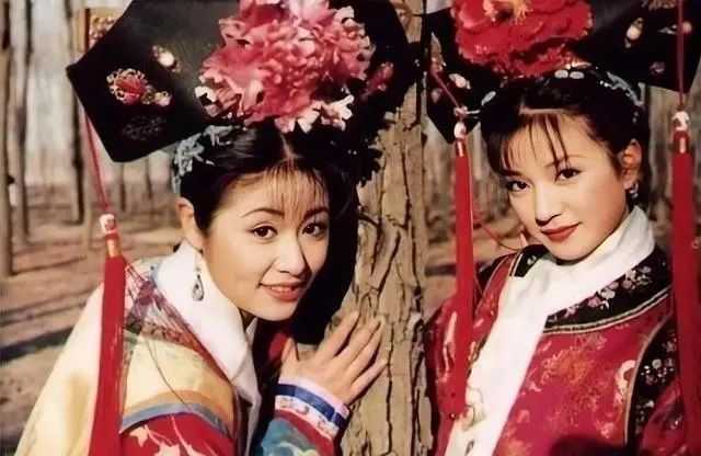 两人同框很明显风格不同。 小燕子爱带红花,穿着鲜艳,首饰也少。 紫薇爱戴粉花,配色温柔,更爱打扮。 |