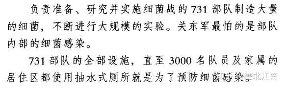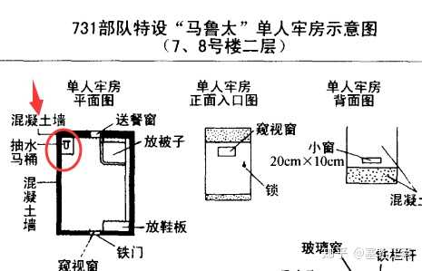 两个要点:一是近乎“奢侈”的清洁;二是重要设施均配备了“抽水式厕所”(也就是现代的冲水马桶)。 为什么要几近奢侈的注意清洁?因为害怕感染,731研究的很大一部分是极具传染性的细菌,举个例子:霍乱菌和赤痢菌都属于消化道烈性传染病(手-口传播),传染性极强,如果不用抽水式厕所,极易引发感染,以当时的医疗水平,这两种病一旦发病则极难治愈(就算现在也不是很好治疗),所以给牢房配备“冲水马桶”是正确的。 3. |