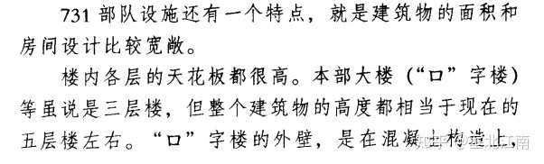 731总部大楼——口子楼外壁都使用了瓷砖,但是文中未提及内部装修,这里可以试想一下:连外墙都使用了瓷砖,那么内部没有理由不使用,所以关于瓷砖这一块,应该也是正确的。 另外在电影里多次出现的电梯也存在,但是电影里貌似是自动的,而实际应该是手动的。 5.最后说下结论为什么是基本正确,因为根据现有资料,我们可能无法知道监狱内部(7、8号楼)详细装修如何,所以说是基本正确。 PS:以上资料来自于森村诚一先生的纪实文学——《恶魔的饱食》第一册 |