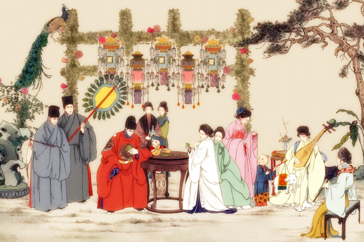 描绘袁枚及其女学生的《随园女弟子湖楼清业图》,主干部分为1792年也就是英国马戛尔尼使团来华那年绘制,但上图为1795年也就是法国督政府堂堂登场那年增绘。我补充这个国际时间线就是想说明代形制与明代风格在清代汉族女装(尤其江南)是硬生生延续到了法革拿战这么晚近,离1644足有百五十年 肯定有人认为我举的画作全都是cosplay场照或臆想式仕女画,但上面除了虚构仕女图以外还有写实的容像与雅集图,而且其他文物也都是这样的,连春宫图都是这样的——人不能凭空想象自己没见过的东西,《金瓶梅》背景设定在宋朝,但是崇祯年间《金瓶梅》版画里男女皆着晚明汉服,而康熙年间《金瓶梅》插画里男的穿臆造汉服、女的穿康熙汉服。 然后你会发现跟这个康熙《金瓶梅》画一样,清朝前中期好多表现生活的绘画作品,女装能看出康雍乾嘉的发展特点,而男装来来回回都是臆造汉服。这叫“女实男虚”,女装有参考,男装没参考但大伙儿实在不想画清朝男装和金钱鼠尾辫,丑就是丑。 顺便说一句古人是做不了服饰史考据的,干这个活需要大量的文物数据和图片资料。你数数我今天发了多少张图,也可以看看我之前答欧洲近代服饰史和明代服饰史的时候掏了多少张图。古人只能根据自己手边的文物个例展开畅想,于是就会出现宋朝人把方心曲领从汉唐护领衬领整成官服外搭白布项圈这种事情,袁世凯整的祭服也和明代祭服除了交领和上衣下裳以外完全两模两样。 |