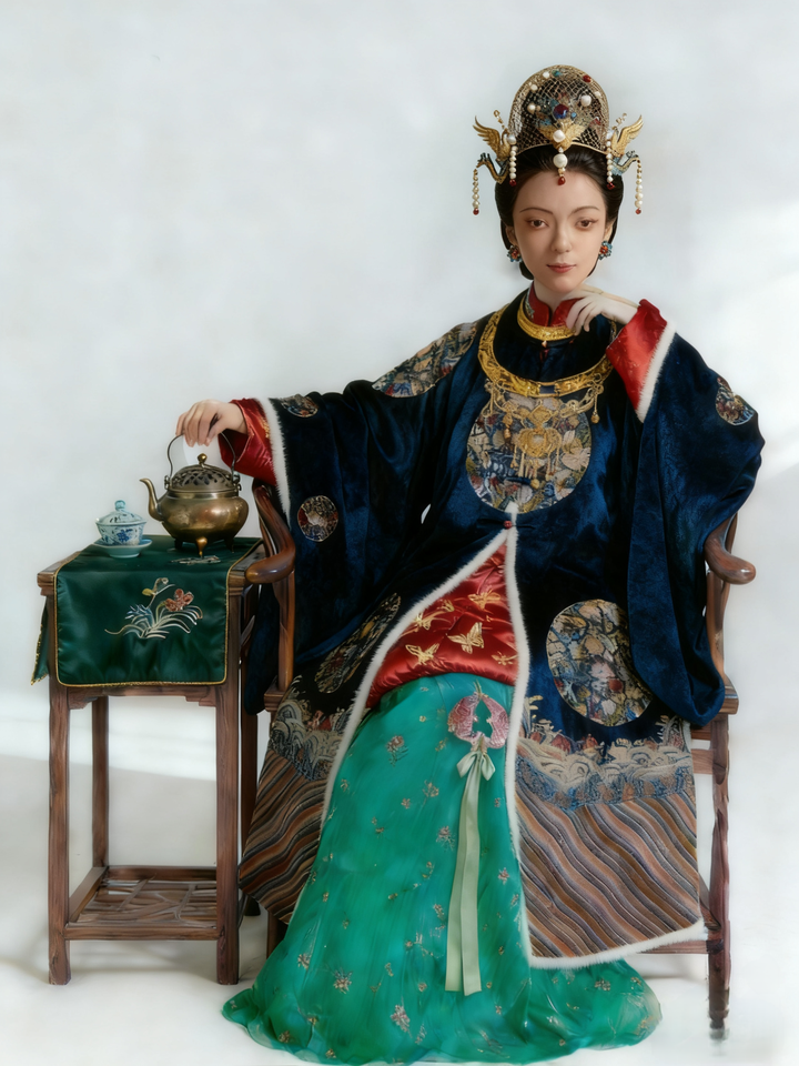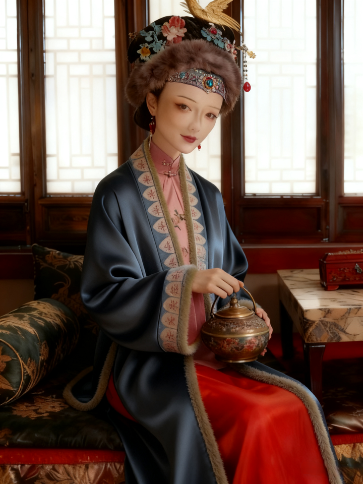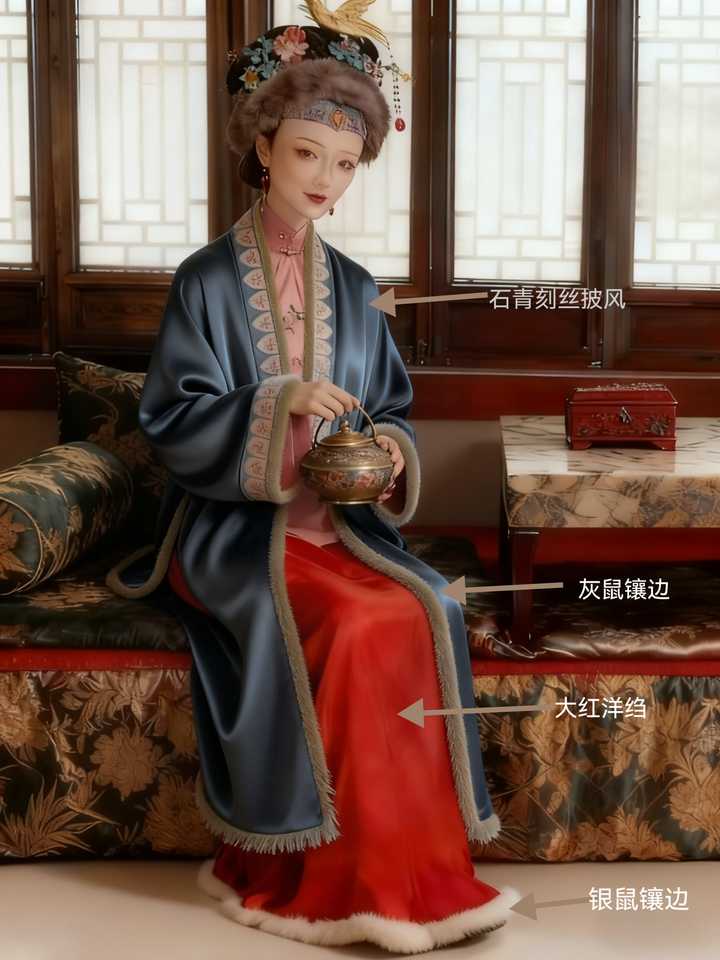 明制没有图案也很美 王熙凤的五彩刻丝石青银鼠褂如果用明制效果应该会更好,有空再来试试。 《红楼梦》第六回:那凤姐儿家常带着紫貂昭君套,围着攒珠勒子,穿着桃红撒花袄,石青刻丝灰鼠披风,大红洋绉银鼠皮裙,粉光脂艳,端端正正坐在那里,手内拿着小铜火箸儿拨手炉内的灰。 |
