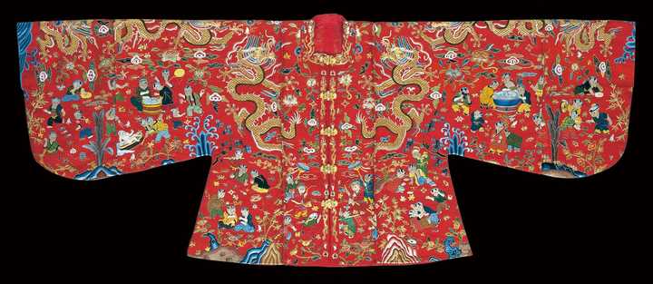明代孔府旧藏的红罗地刺绣过肩龙纹圆领女袍 这个工艺上没那么高难度。可就是美极了,飒极了。 |
