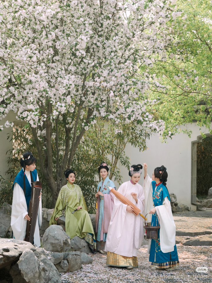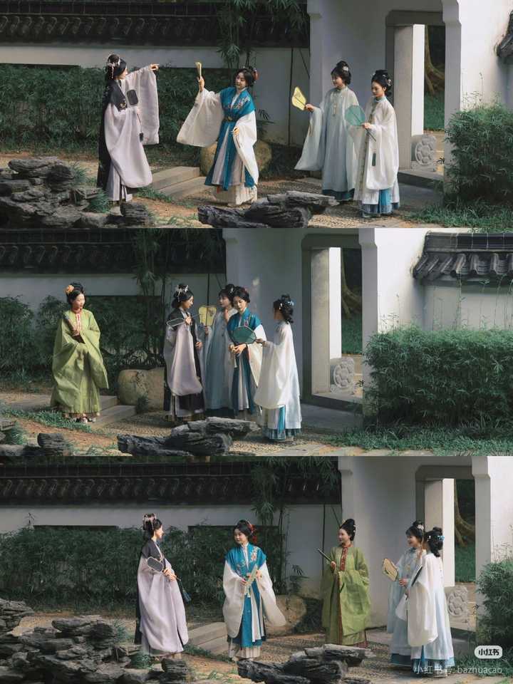 《红楼梦》原著描写过的“观音兜”(探春)是清代风帽,黛玉这一身就是观音兜+“一口钟”斗篷,参考的也正是随园女弟子雅集图和清代红楼图册里的造型 |