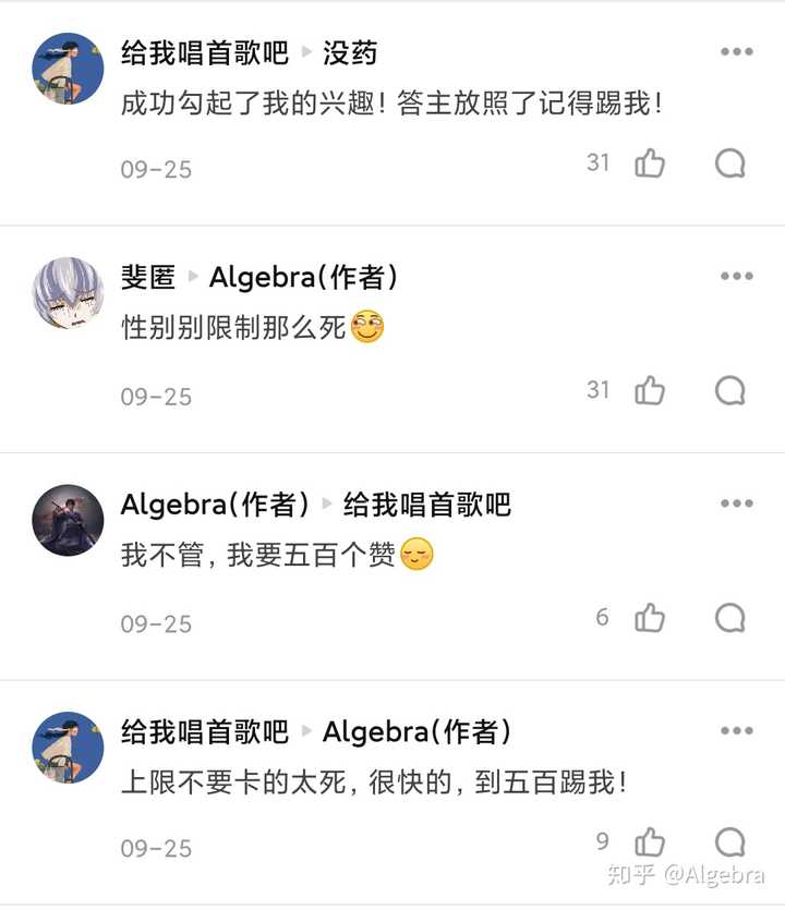 首先,我先解释一下我为什么要女装 (╥╯﹏╰╥)? Algebra:我女生,这个择偶标准算高吗?3.6 万赞同 · 8931 评论回答 |