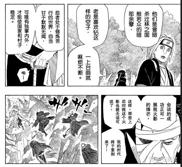 这里翻译有问题不是雾隐是霜隐 可见小国别说是普通忍者了,连象征性地位更高的大名,土影也能直接命令,连招呼都不打。 同样,这些小国的战力其实相当差,团藏参加五影大会前,曾经被一个小国林之国的残党刺杀过。 |