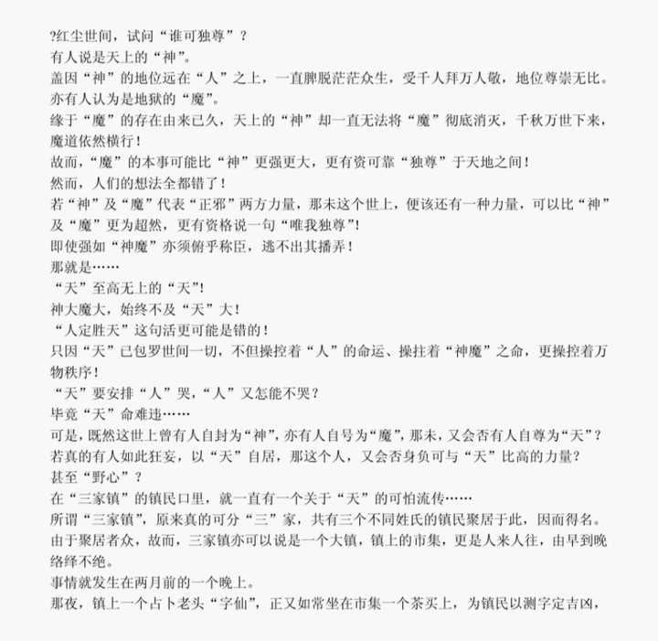 《风云》小说里面有一个反派boss“无道狂天”,逼格很高,出自《天哭》这一卷。他可以用元气凝成一个人,然后在数里之外操控这个假人与别人交手。“无道狂天”出场是为了得到“天哭”(仓颌造出第一个字时,所发现的天地间的可怕秘密),步惊云和聂风则用摩诃无量导致“天哭”爆炸,重创了“无道狂天”,阻止了他的企图。“无道狂天”逃走了,但仍然无人知道其真身到底是什么样。 但自此之后,“无道狂天”就完全消失了,再也没有出现过,不管是漫画还是小说系列,都没有再出现过这个人,也没有揭示其身份。不知道是作者忘了这个伏笔,还是就只打算让这个boss出来混一下过场。这样一个无头无尾的boss,应该是《风云》里最奇葩的存在了。 放段原文吧: |