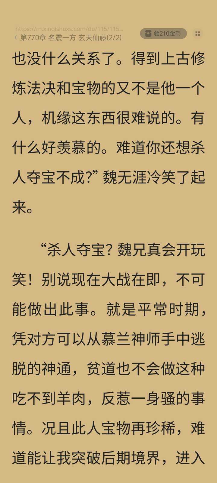 有人注意,只不过注意他的人给韩立编了一个可以自圆其说的经历。 对于天南修仙界来讲,落云宗突然多出来一个元婴修士到没什么,每个大的宗门或多或少都会藏实力,所以多出一个之前不显山不露水的元婴期到是可以接受。 韩立的身份暴露是在救下雷万鹤一行之后,这时有心之人才知道这个韩立是原先黄枫谷的筑基修士,在魔道入侵时做为弃子被放弃,再之后这个人的就失踪了,再出现就是在落云宗结婴,所以韩立消失的这段时间去了哪,得到了什么机缘,就引起了一些人的怀疑。 这个怀疑一直持续到边境大战的时候,在边境大战中,慕兰草原提出要单挑,而韩立在之前展现过可以击杀同阶元婴期修士的实力,韩立自然就进入到了候选名单之中。 为了拉韩立去单挑,当时的天南三大修士就让老魔提条件,老魔借此向这三位求庚精但不是白要,可以等价交换。 于是韩立用八级毒蛟的鳞片和八级龟妖的壳跟至阳上人和魏无涯换来了几块庚精,因为天南压根就没有八级妖兽,六级七级都没有,而且魏无涯修的还是毒功,这个八级毒蛟的鳞片对于他的价值根本没法估量,魏无涯不但多给了一块庚精还把老魔抢南宫婉的事也给平了,至阳上人则是把玄天仙藤的根部给了老魔。 交易之后,至阳上人跟魏无涯两人也为老魔这段时间的失踪下了定论,韩立在失踪之后接受了一个上古修士完整的衣钵,从功法到法宝,从灵宠到材料,都是来自于上古修士。 而之所以没有人想着去杀人夺宝,根本原因还是老魔实力太猛,至阳上人都没把握拿下。 |